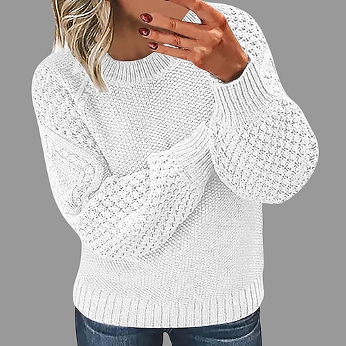 Per donna Felpa Cardigan Maglione Streetwear Casual Tinta unica Girocollo Lavorato a maglia Spalle scoperte Manica a Lanterna Manica Lunga Top Regolari Maglia Quotidiano Ferie Uscire Nero Bianco