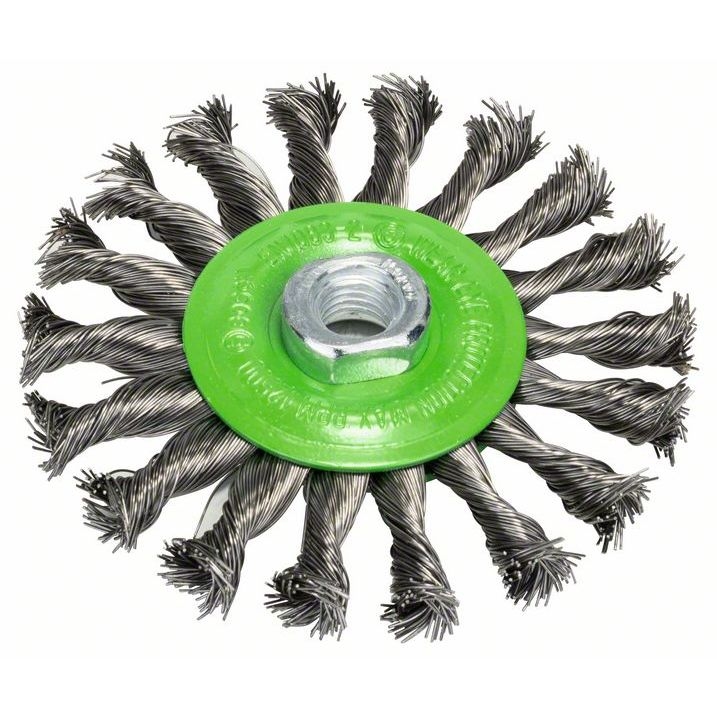 Scheibenbürste, gezopft, rostfrei, 115 mm, 0,5 mm, 12500 U/ min, M14