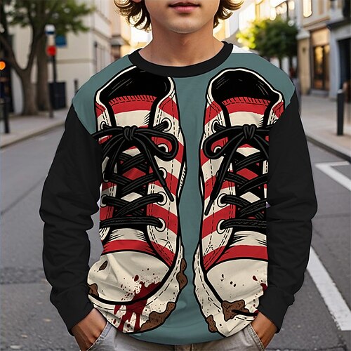 Herren Lustiger Slang T Shirt Langarm T-Shirt 3D-Druck Rundhalsausschnitt Hemd Mode Täglich Basic Straße Lässig Täglich Schwarz Blau Grün Ganzjahres Bekleidung S M L XL XXL XXXL