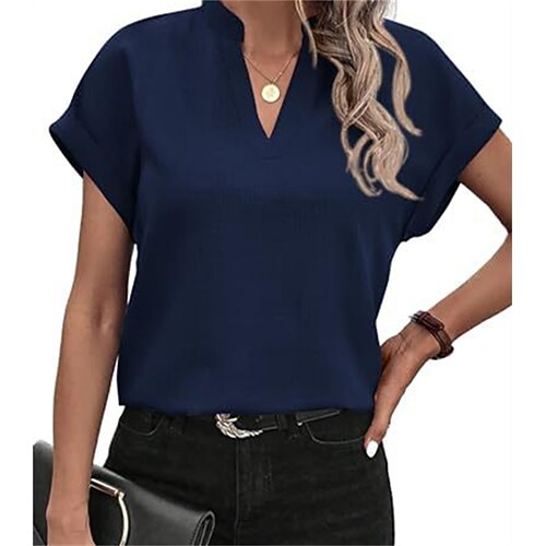 Per donna Top estivi Blusa Top Eleganti Tinta unica Elegante Signore Classico Manica Corta Scollo a V Top Regolari Quotidiano Lavoro Uscire Arricciato Volant Patchwork Nero Bianco Giallo Rosa Marrone