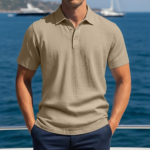 Per uomo Camicia di lino Polo Casuale Vacanza Classico Manica Corta Moda Tinta unica Semplice Bottoni Estate Primavera Vestibilità regolare Blu Nero Bianco Blu marino Verde Cachi Camicia di lino