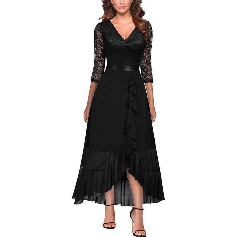 Women's Blue Black Summer Spring Fall Maxi Dress A Line Dress Party Formal Formal Work Regular Fit Plain V Neck