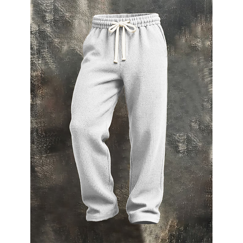 Men's Sweatpants Joggers Trousers Waffle Pants Drawstring Pocket Elastic Waist Plain Comfort Sports Outdoor Daily Fashion Casual Black White Micro-elastic