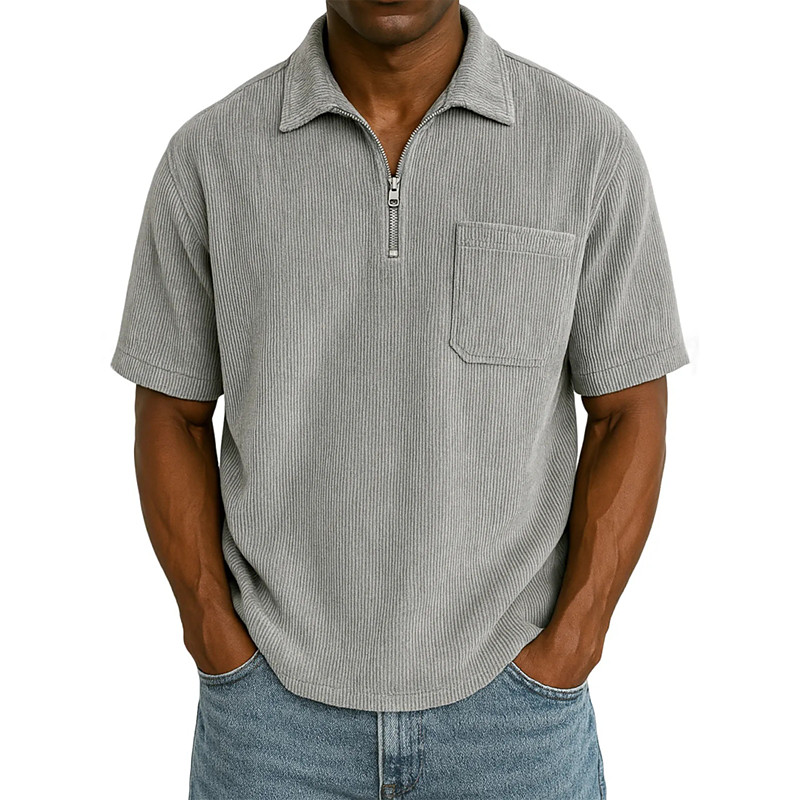 Men's Zip Polo Textured Casual Holiday Lapel Quarter Zip Short Sleeve Fashion Basic Plain Textured Quarter Zip Warm Summer Spring Regular Fit Light Blue Army Green Dark Brown Black Purple khaki Zip