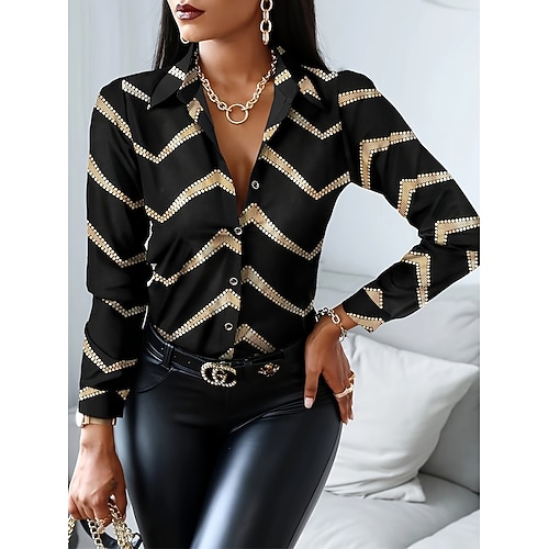 Per donna Camicia da lavoro Grafico Leopardo Elegante Casual Manica Lunga Colletto a Camicia Top Regolari Lavoro Abbigliamento da sera Quotidiano Nero Bianco Rosso Oro Estate Autunno Inverno