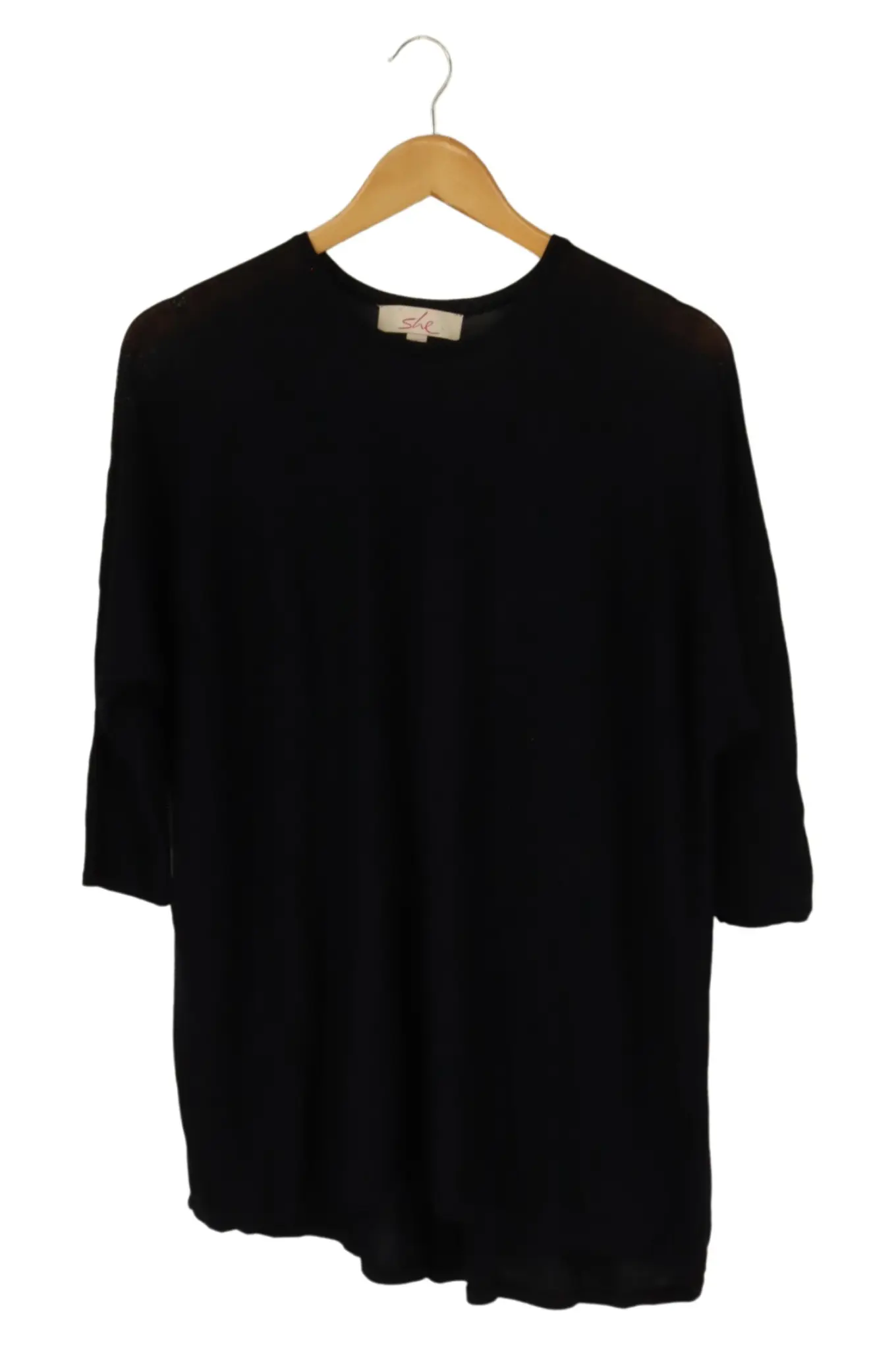 SHE Damen Pullover Gr. S Schwarz Casual Halbarm Viskose