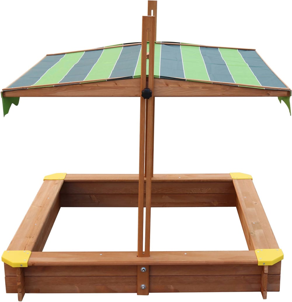 Sabbiera con tetto, legno FSC, marrone/verde, 118x118 cm