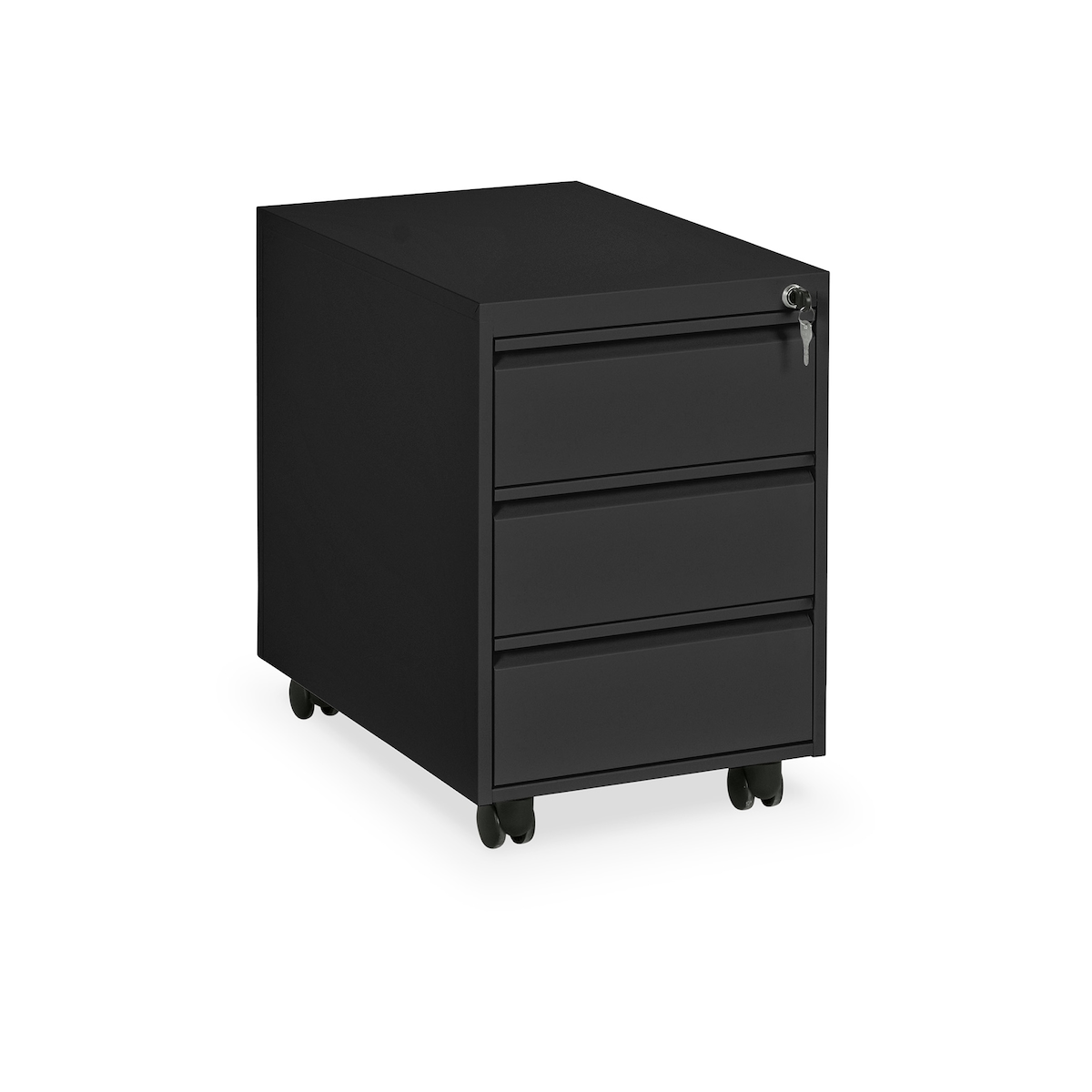 CEHA Büro- und Rollcontainer 600 mm Tiefe aus Stahl mit 3 Schüben in RAL9005 (tiefschwarz)