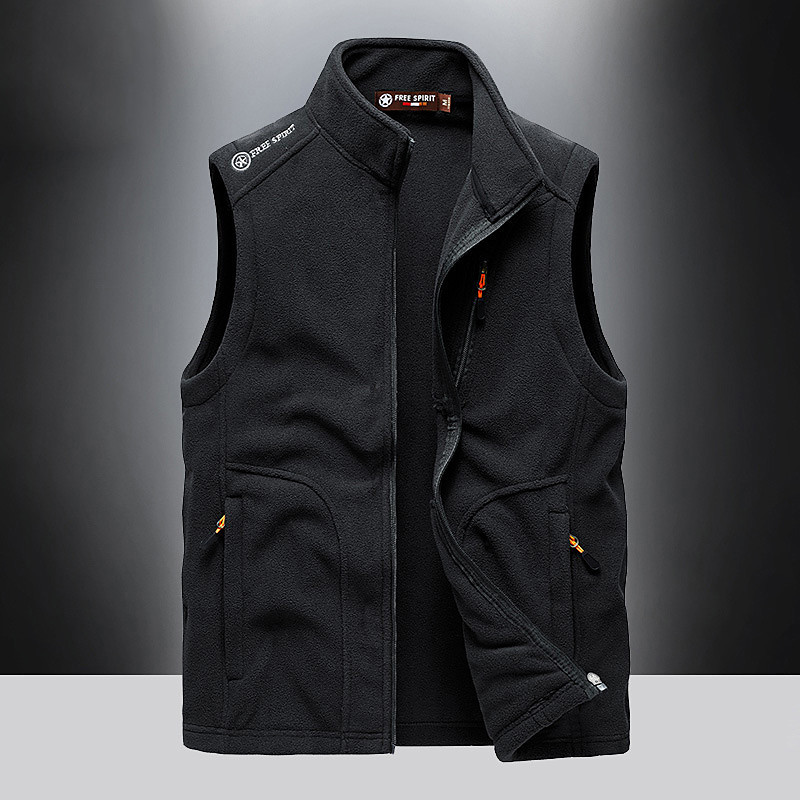 Men's Fishing Vest Daily Casual Fall Winter Pocket Fleece Polyester Thermal Warm Plain Zipper Stand Collar Regular Fit Black Army Green Dark Blue Dark Gray Vest
