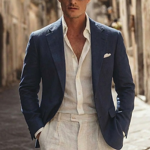 Per uomo Blazer di Lino Colletto ad incastro Moda Classico Casual Tinta unita Blazer in lino Nero Bianco Rosa Vestibilità su misura Monopetto Due Bottoni