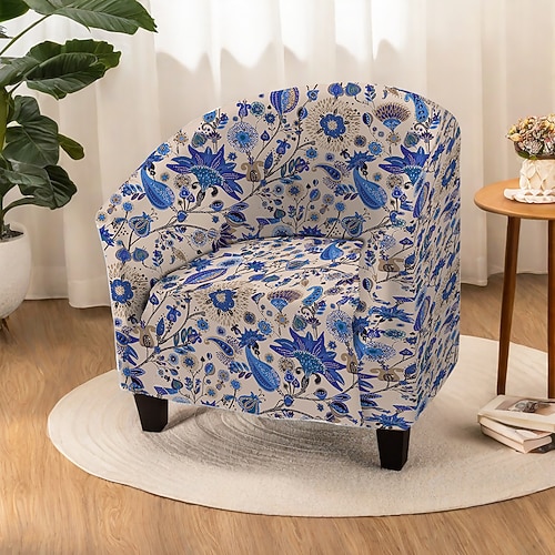 Copripoltrona club con stampa a righe di piante e motivi geometrici, in poliestere, per soggiorno, camera da letto e ufficio domestico