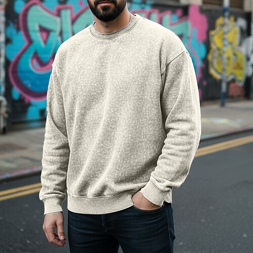 Per uomo Maglia Felpa con cappuccio invecchiata Aalbicocca Nero Rosa Verde militare Marrone Girocollo Semplice Quotidiano Ferie Uscire 100% Cotone Vintage Retrò Casual Autunno Inverno Abbigliamento