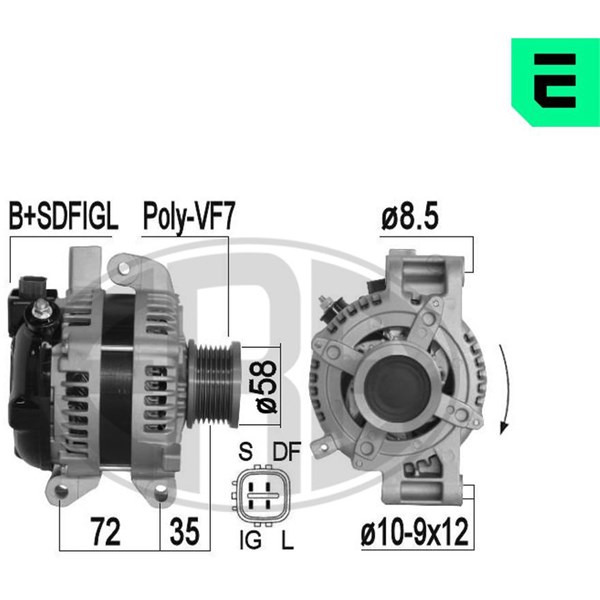Laturi 12V 100A Bv psh +line 195.997.100.050 - lexus gs, ls - OE 2706050210, 2706050230, 2706050240