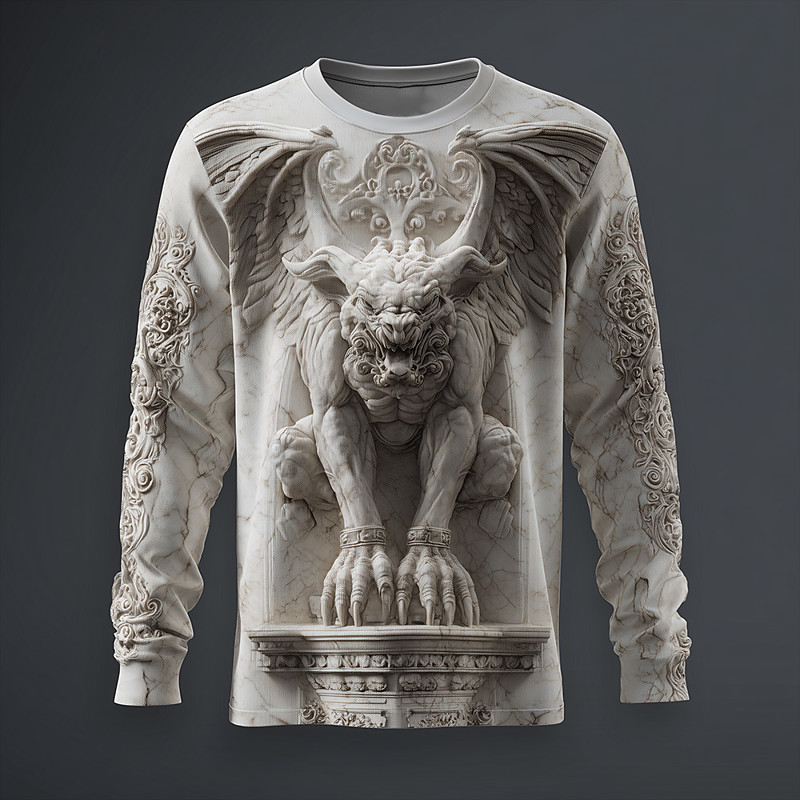Men's Optical Illusion Gargoyle T Shirt Long Sleeve T shirt 3D Print Crew Neck Shirt Fashion Exaggerated 3D Street Daily White Summer Spring Fall Clothing Apparel S M L XL XXL XXXL