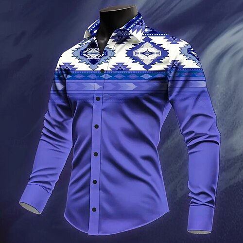 Per uomo Azteco Etnico Cultura indiana Camicia Camicia Western Camicia da cowboy Manica Lunga Vintage Retrò All'aperto Vacanza Primavera Autunno Collo ripiegato Stampa 3D Camicia tipo lino Viola