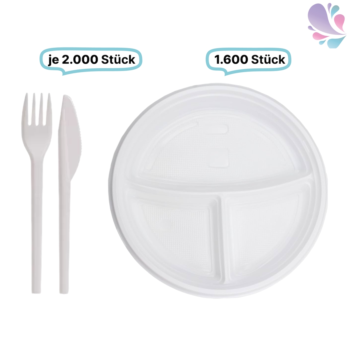 Blanc HYGIENIC SET: Menüteller & Besteck, Mehrwegbesteck, 1600x Teller & 2000x Besteck, weiß, robust, Premium Qualität