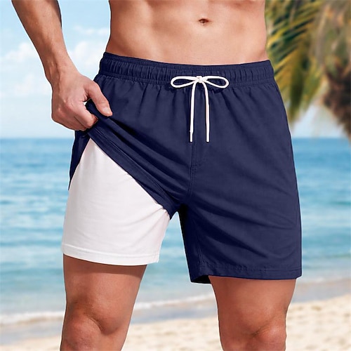 Per uomo 2pcs Costumi da bagno Pantaloncini da bagno boxer Shorts Tasca Elastico in vita Blocco di colore Semplice Tinta unita Traspirante Sopra il ginocchio Casuale Spiaggia Nuoto Vacanza Moda Blu