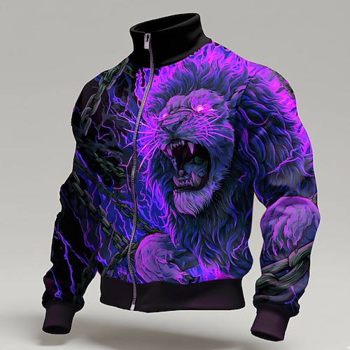 Per uomo Leone Fiamma Giacca di pelle Felpa Cool Quotidiano Fantasia Pantaloni Tattici Collo alla coreana All'aperto Abbigliamento casual alla moda Feste Viola Arancione Verde Con zip Primavera