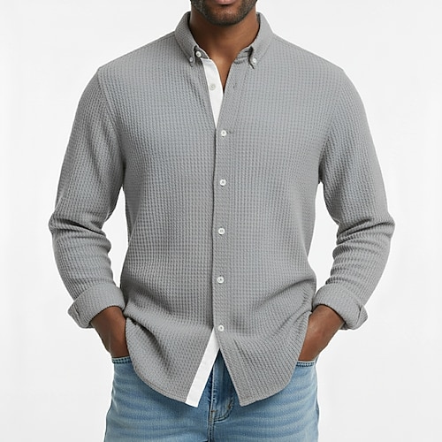 Per uomo Camicia Camicia a nido d'ape Camicia casual Camicia con colletto alla coreana Camicia con Bottoni Nero Bianco Vino Verde Kaki Manica Lunga Semplice Collo alla coreana Quotidiano Uscire
