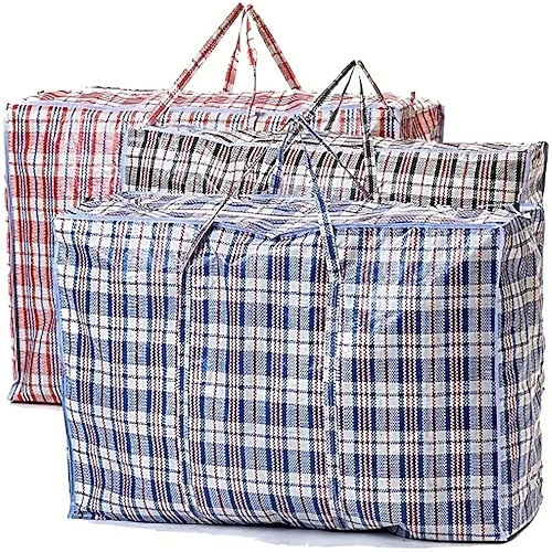 Confezione da 3 sacchi portaoggetti extra large per traslochi, resistenti e riutilizzabili, con cerniera, per organizzare vestiti, biancheria, biancheria da letto, armadi e traslochi.