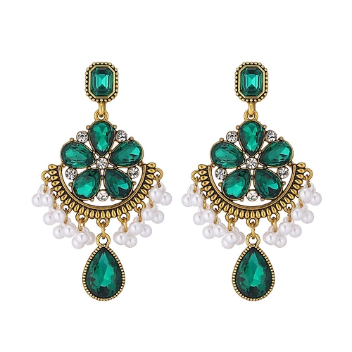Per donna Orecchini pendenti Nero Bianco Champagne Lega Bohemien Vintage Fiore decorativo