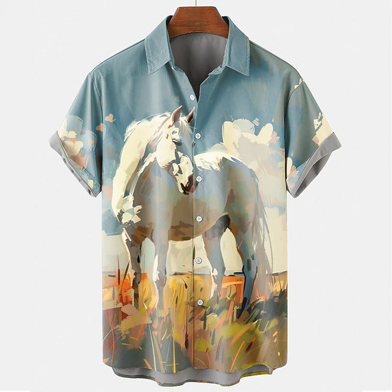 Men's Horse Polo Short Sleeve Polo Shirts Collared Shirts Casual School Outdoor Daily Wear Home Wear Buttons 3D Print Summer White Blue Green