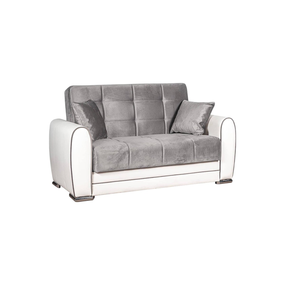 Dmora Schlafsofa Pablito, Eck-Container-Schlafsofa aus Kunstleder und Stoff, 163x84h91 cm, Weiß und Grau
