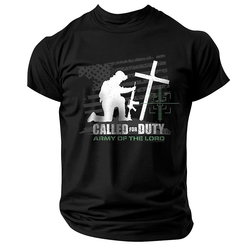 Men's Quotes Sayings Cross Letter Print T Shirt Tee Top 100% Cotton Short Sleeve Graphic Shirt Black Army Green Dark Blue Comfortable Tee Street Sports Outdoor Fashion Designer Clothing