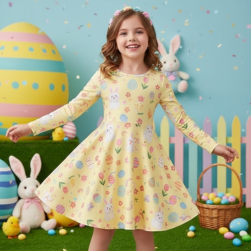 Vestito da coniglio con grafica 3D per bambine, a maniche lunghe, con stampa 3D, per primavera, autunno, quotidiano, vacanza, festa, casual, principessa, bellissimo, per bambine dai 4 ai 12 anni,