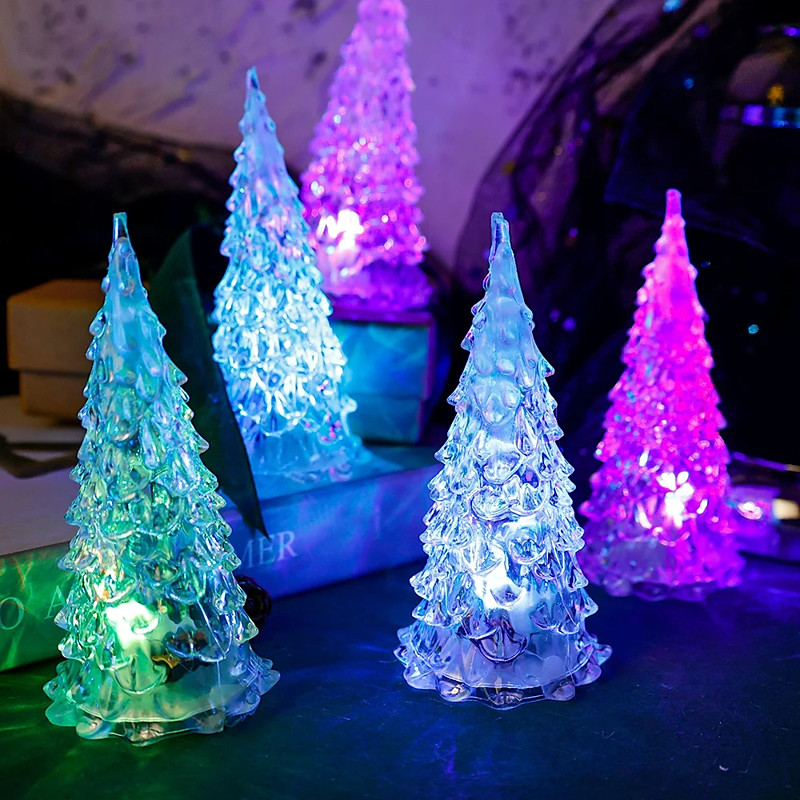 Colorful Acrylic Christmas Tree Christmas Gift Iceberg Ice Cone Light Led Light Desktop Night Light Decoration Holiday Party Wedding Decoration Light Button Battery Powered 1PC