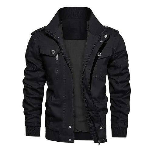 Herren Leichte Jacke Cargo-Jacke Freizeitjacke Urlaub Täglich Warm Tasche Frühling Herbst Einfach Mode Klassisch Revers Regulär Schwarz Rote Khaki Hellgrau Dunkelgray Jacken