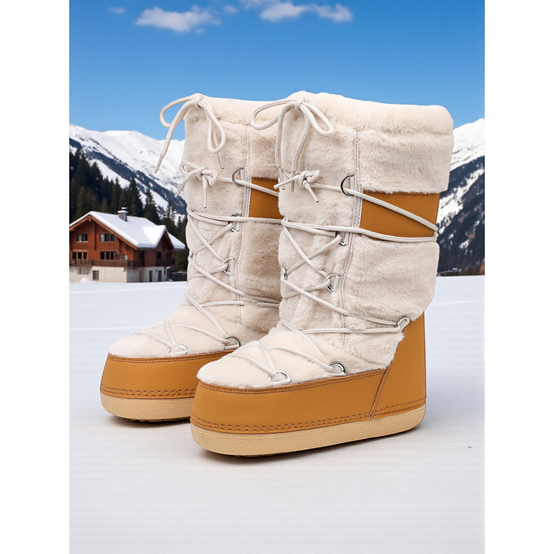 Women's White Faux Fur-Lined Wedge Snow Boots - Waterproof Winter Boots with Lace-Up and Platform Sole, Stylish and Cozy for Cold Weather and Casual Outdoor Activities