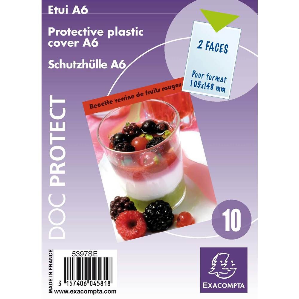 Exacompta 5397SE 10x Packung mit 10 Dokumentenschutzhüllen einfach aus glattem PVC 150µ, für Format DIN A6 - Kristall