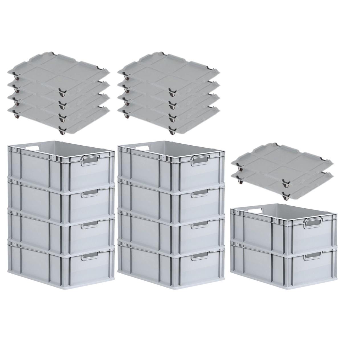 PROREGAL SparSet 10x Eurobox NextGen Economy mit Auflagedeckel & 4x Verschlüsse Schwarz, Griffe offen, HxBxT 22x40x60cm, 44L, Eurobehälter, Box