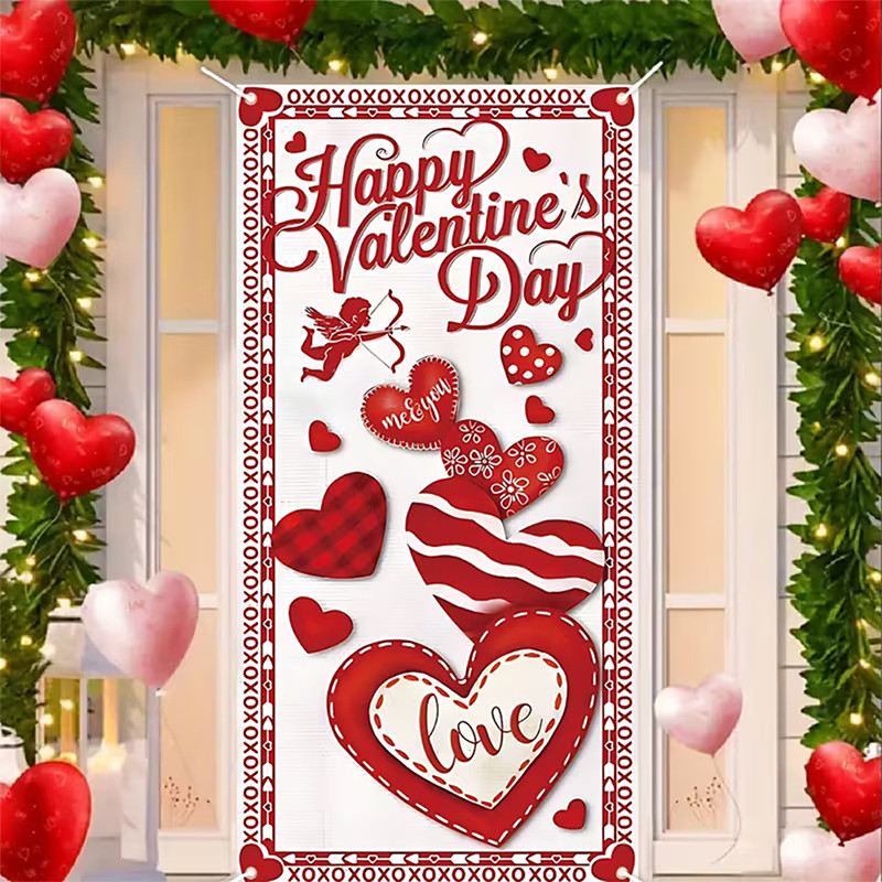 Valentine's Day Posters Door Cover Outdoor Banners Love Heart Cute Romantic 3D Party Dorm Shooting Backgrounds Front Door Marriage Proposal Decoration Home Decor