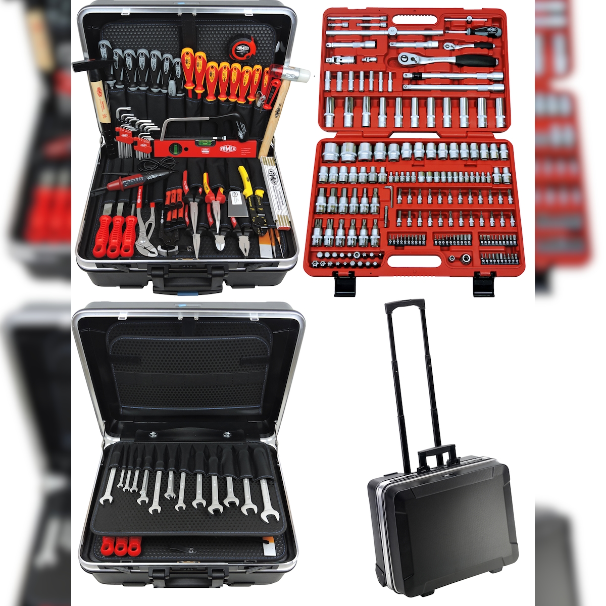 FAMEX Werkzeuge FAMEX 604-08 Profi Werkzeugtrolley bestückt in ABS-Schallenkoffer - 302-tlg. - PROFESSIONAL