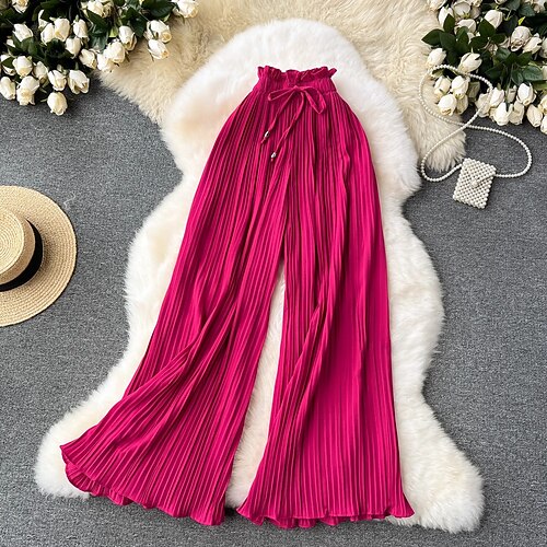 Per donna Gamba larga Chinos Casual Lunghezza intera Naturale Semplice Pieghettato Gamba larga Comodo Traspirabilità Casual Quotidiano Nero Rosa Verde Chiaro Blu Primavera Autunno Vestibilità comoda