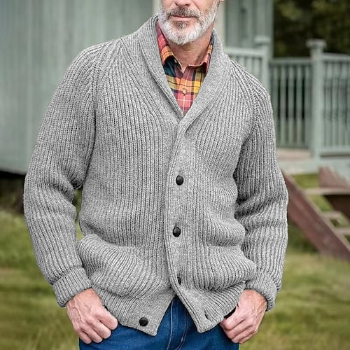 Per uomo Cardigan Maglione Maglione lavorato a maglia Cavi Maglia Standard Abbottonare Tasche laterali Tinta unica Bavero Di tendenza Classico Da tutti i giorni Appuntamento Abbigliamento Autunno