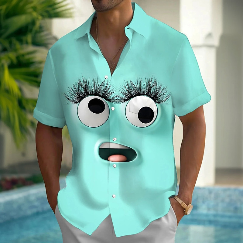 Men's Cartoon Funny Human face Shirt Summer Shirt Button Up Shirt Short Sleeve Fashion Casual Vacation Party Holiday Summer Spring Turndown 3D Print Collared Shirts Front One Pocket Green