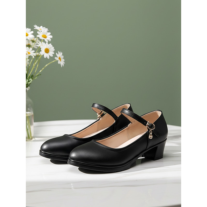 Elegant Patent Black Mary Jane Heels - Versatile Office-to-Evening Footwear for Women, with Chunky Heel and Ankle Strap