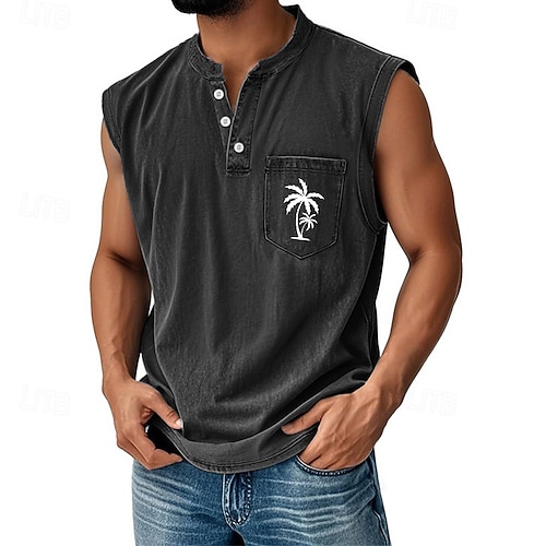 Per uomo Maglietta smanicata Canottiera Maglietta senza maniche Senza Maniche Henley Tutte le stagioni Albero di Cocco Moda Designer Tasca Vacanza Streetwear Uscire Nero Rosa Blu marino scuro
