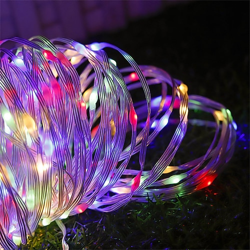 Luci natalizie a LED in pelle, a energia solare e con ricarica USB, ghirlanda da esterno impermeabile, lampada solare ad alta potenza per decorazioni da giardino, 10/20/30/50/100 m