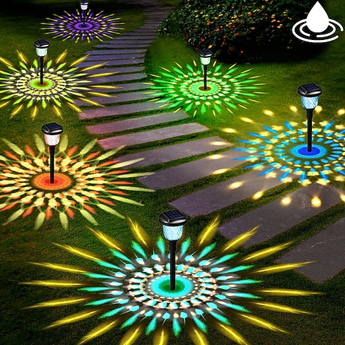 1 Stück 5 W LED-Solarleuchten LED-Flutlichter Wegbeleuchtung Laternen Solarbetrieben Kreativ 2 Modi RGB Warm 5 V Außenbeleuchtung Schwimmbad Hof 4 LED-Perlen