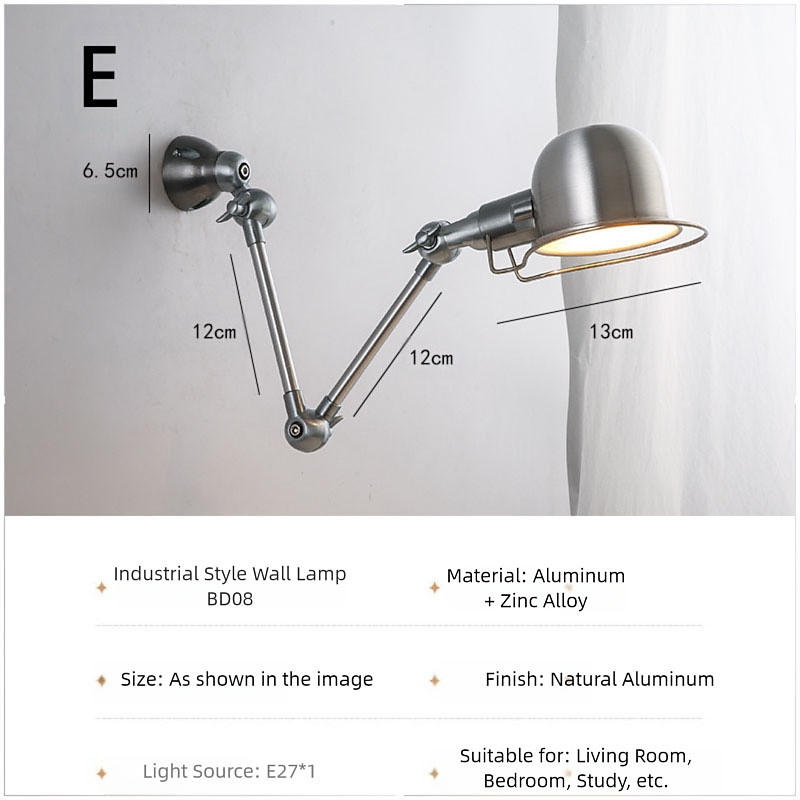 Wall Light with Swivel Joint Antique Finish Spot Light Living Room Lamp Bedside Lamp Silver