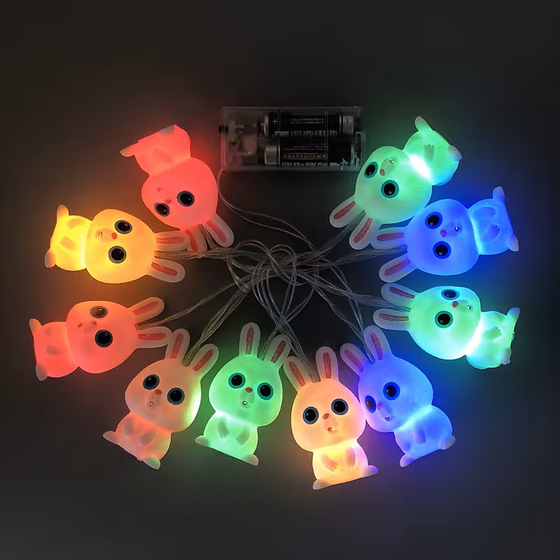 2m 10LED Cute Bunny String Lights Battery Powered Easter Bunny Lights Cartoon Animal Fairy Tale String Lights for Room Bedroom Living Room Dining Room Easter Party Decoration