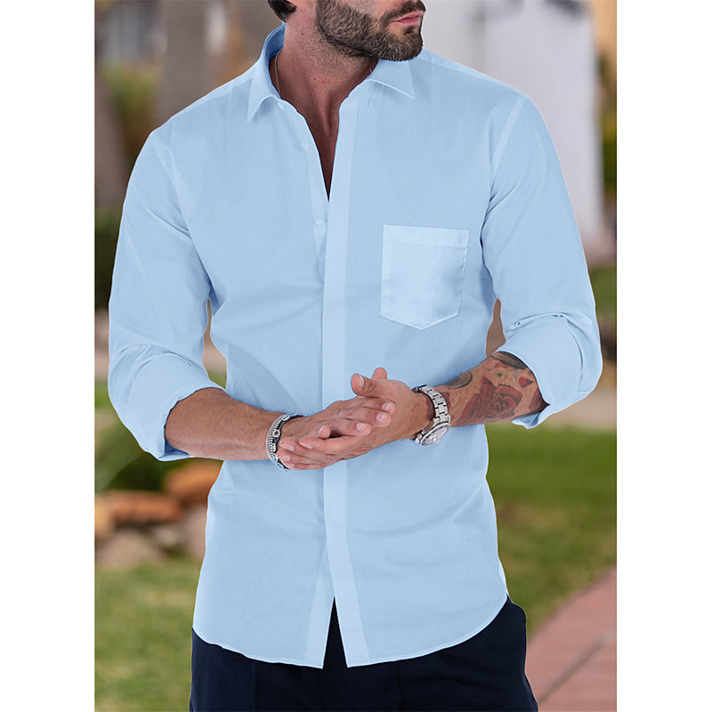 Men's Dress Shirt Wrinkle Resistant French Cuff Shirt Collared Shirt Button Up Shirt Waves Wedding Outdoor Navy Blue Blue Light Blue Long Sleeve Turndown Summer Spring Clothing Apparel Button-Down