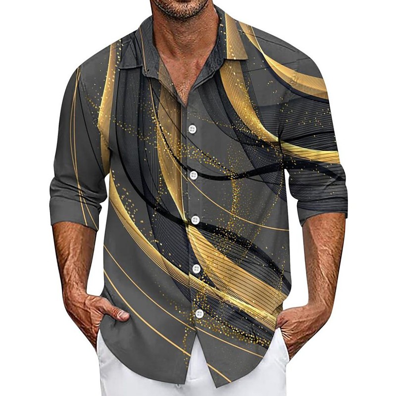 Men's Geometric Gradient Waves Shirt Button Up Shirt Casual Dress Shirt Long Sleeve Fashion Casual Vacation Daily Streetwear Summer Spring Turndown 3D Print Collared Shirts Black Blue Gold Dark Gray