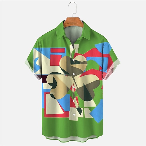 festa di san patrizio color block fenicottero quadrifoglio camicia hawaiana da uomo weekend festa a tema eventi primaveraamp; couverture estiva manica corta verde s, m, l camicia in tessuto