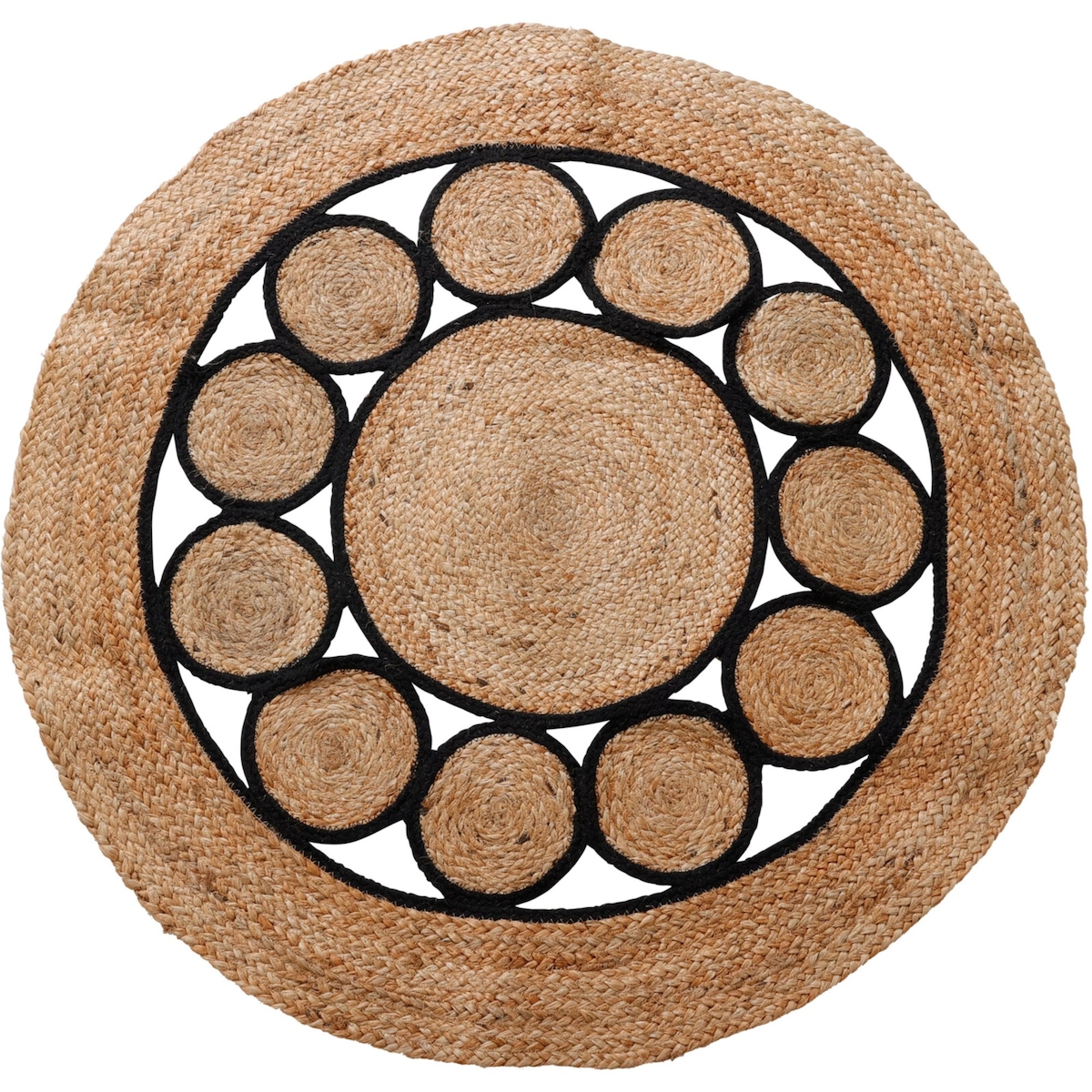 WellHome - Runder geflochtener Teppich aus Jute und Baumwolle, 90 cm