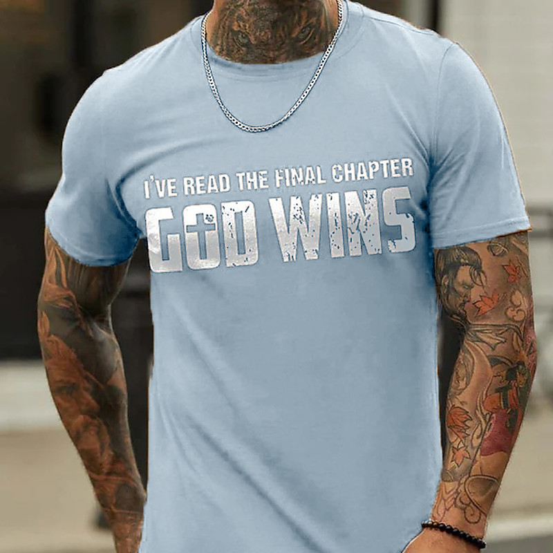 Men's Short Sleeve Graphic T-Shirt: 'I'VE READ THE FINAL CHAPTER GOD WINS' Christian Faith Tee